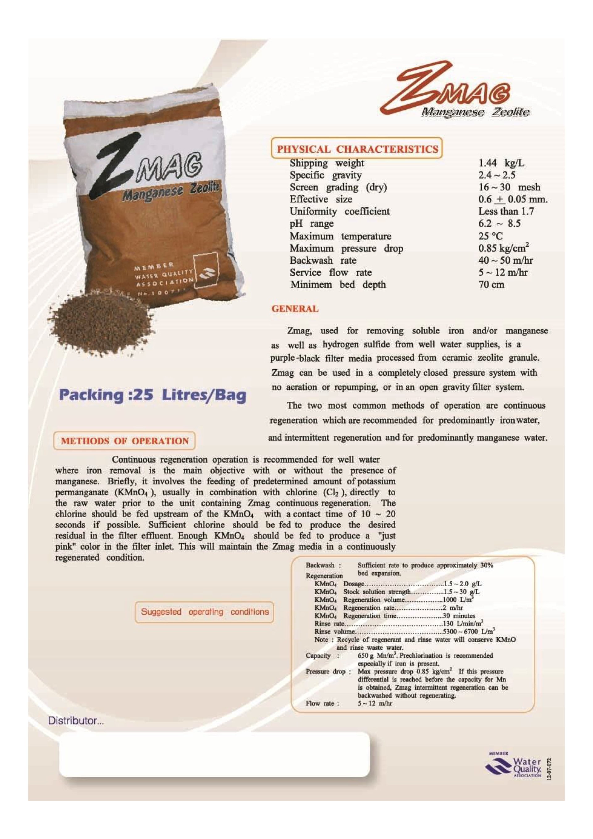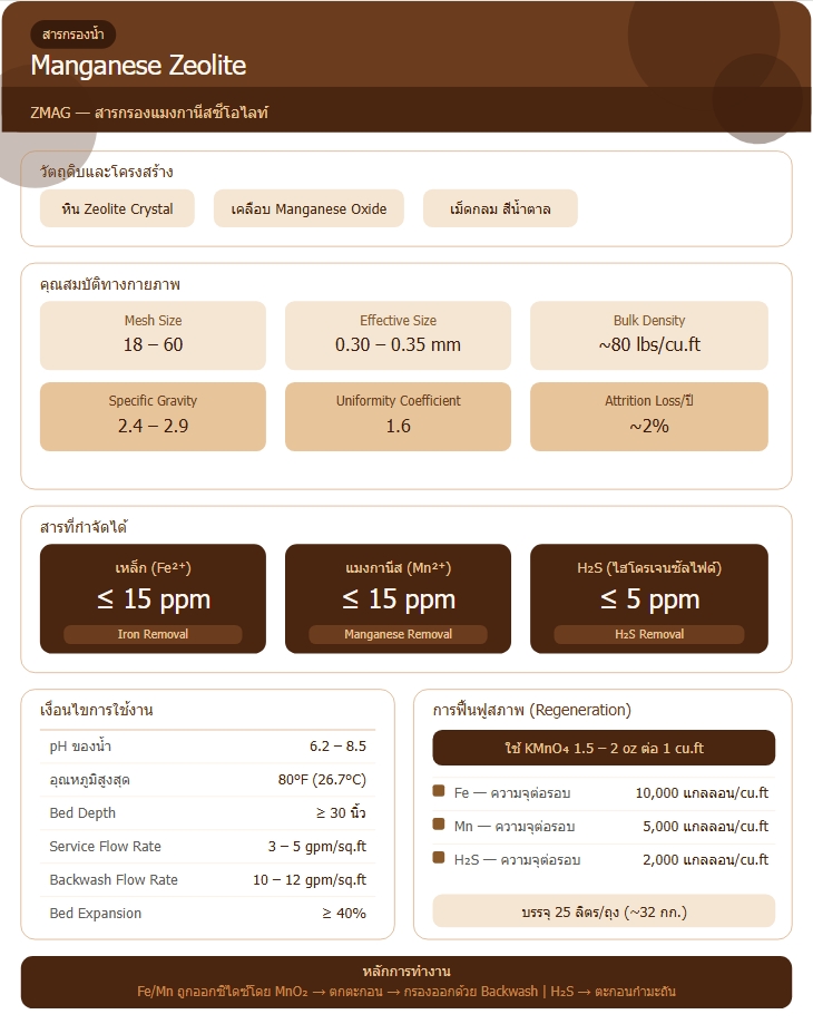 สารกรอง แมงกานีสซีโอไลท์ Manganese Zeolite Z mag (25ลิตร/ถุง)
