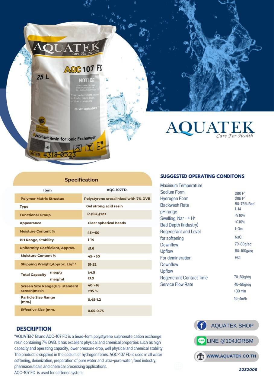 สารกรองเรซิ่น Aquatek รุ่น 107FD Food Grade (NSF) — 25 ลิตร